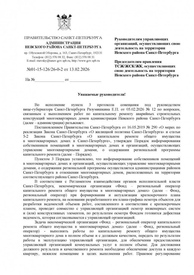 ПРАВИТЕЛЬСТВО САНКТ-ПЕТЕРБУРГА АДМИНИСТРАЦИЯ НЕВСКОГО РАЙОНА САНКТ-ПЕТЕРБУРГА